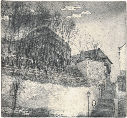 Auch hier geht‘s nach oben • Aquatinta Radierung • 18,5 x 19,9 cm • 2004